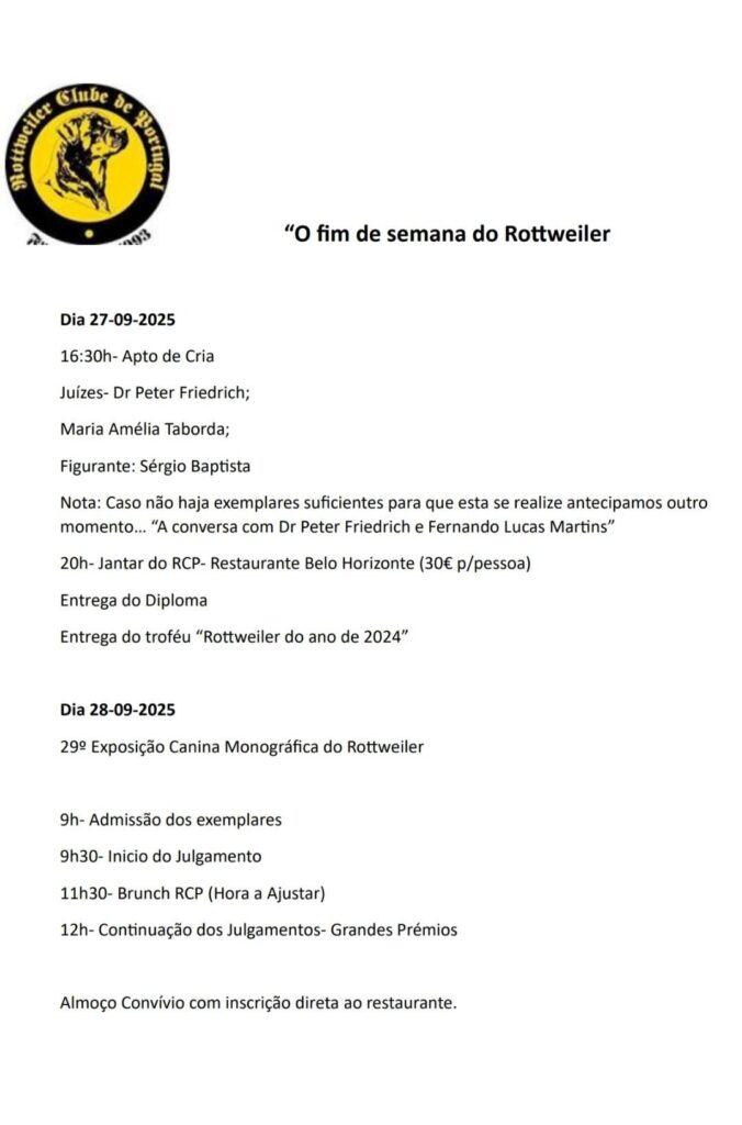Programa social da 29° Monográfica do Rottweiler Clube de Portugal