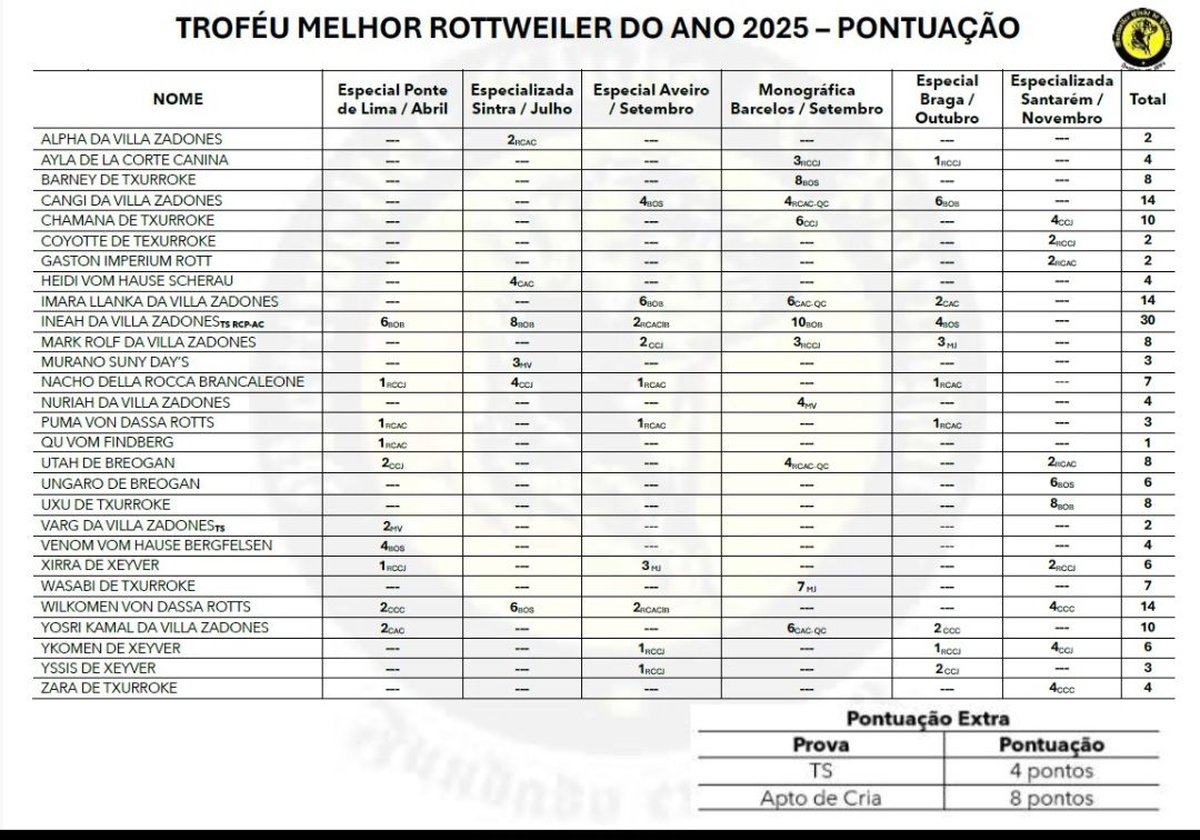 TABELA CLASSIFICATIVA FINAL – ROTTWEILER DO ANO 2025 ![]()